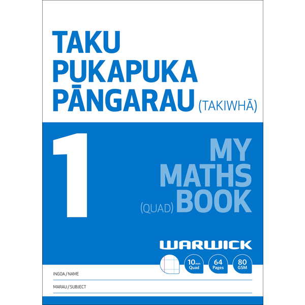 This Warwick My Maths Book 2 Te Reo is perfect for use at school. It has 64 pages (32 leaf) of 80gsm paper with 10mm quad rulings making it easy to write and solve maths problems. It is a A4 plus size and measures 230x317mm reinforced with a 4 staple binding. The laminated cover helps to protect against wear and tear and ensure pages, are kept safe and secure. Reference material such as addition up to 10, doubles up to 20, basic fractions, 100's chart, basic 2D shapes and a write on wipe off digital/analogue clock face is included. The front cover features Te Reo Maori.