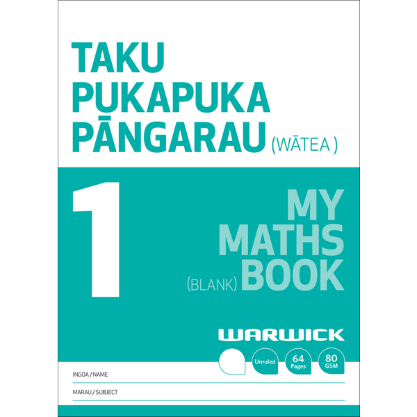 his Warwick My Maths Book 1 Te Reo is perfect for use at school. It has 64 pages (32 leaf) of 80gsm paper with unruled pages making it easy to write and solve maths problems. It is a A4 plus size and measures 230x317mm reinforced with a 4 staple binding. The laminated cover helps to protect against wear and tear and ensure pages, are kept safe and secure. Reference material such as addition up to 10, double up to 20 numbers up to 100 chart, basic 2D shapes, and a write and wipe digital/analogue clock face is included. The front cover features Te Reo Maori.