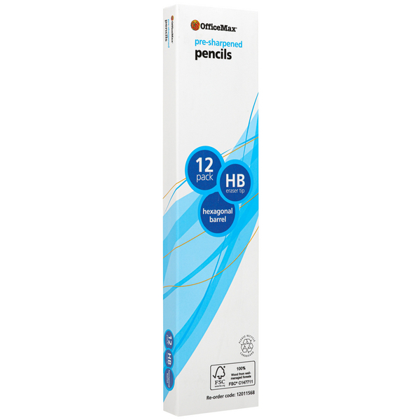 OfficeMax HB Lead Pencils are perfect for everyday use at home, school or the office. The pencils are manufactured using a high-tech bonding process to ensure quality and are pre-sharpened so you can start using them straight away. Each pencil has a hexagonal barrel to help reduce finger fatigue.