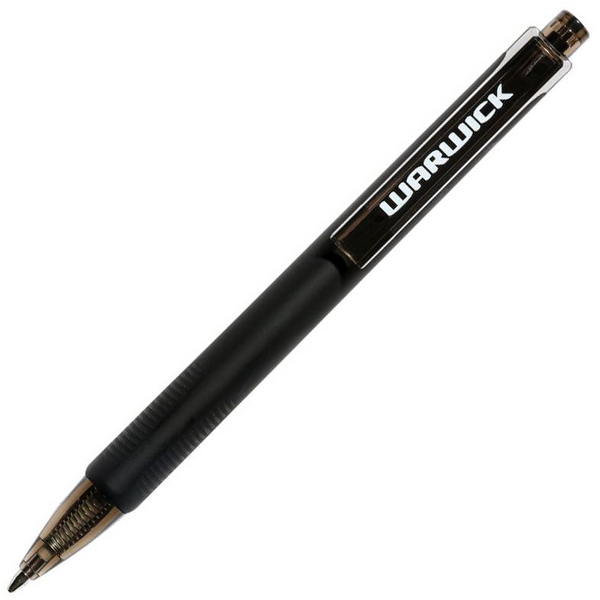 Stock up on these Warwick Black Tri Barrel Ballpoint 1.0mm Medium Tip pens for all your writing needs. These black ballpoint pens feature a triangular shaped barrel for a comfortable, ergonomic grip as you write. Its barrel shape prevents the pen from rolling off desks and surfaces when not in use. Soft, rubberised coating on barrel to easily hold as you write, ideal for everyday use and for young learners. Retractable design is great for popping in your pencil case, briefcase, pocket or hand bag.