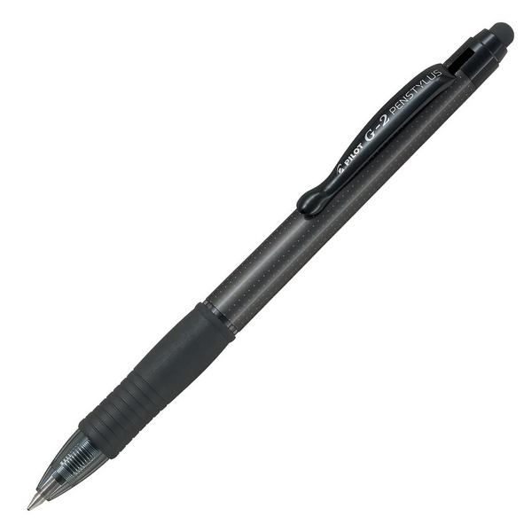This Pilot G2 Stylus Grey Barrel Retractable Gel Ink Rollerball Pen is the perfect multi-tool for any desk. A pen on one end and a stylus for your smart device on the other. This gel rollerball pen is retractable by pressing the clip down. The 0.7mm tip gel ink allows for smooth, precision writing .